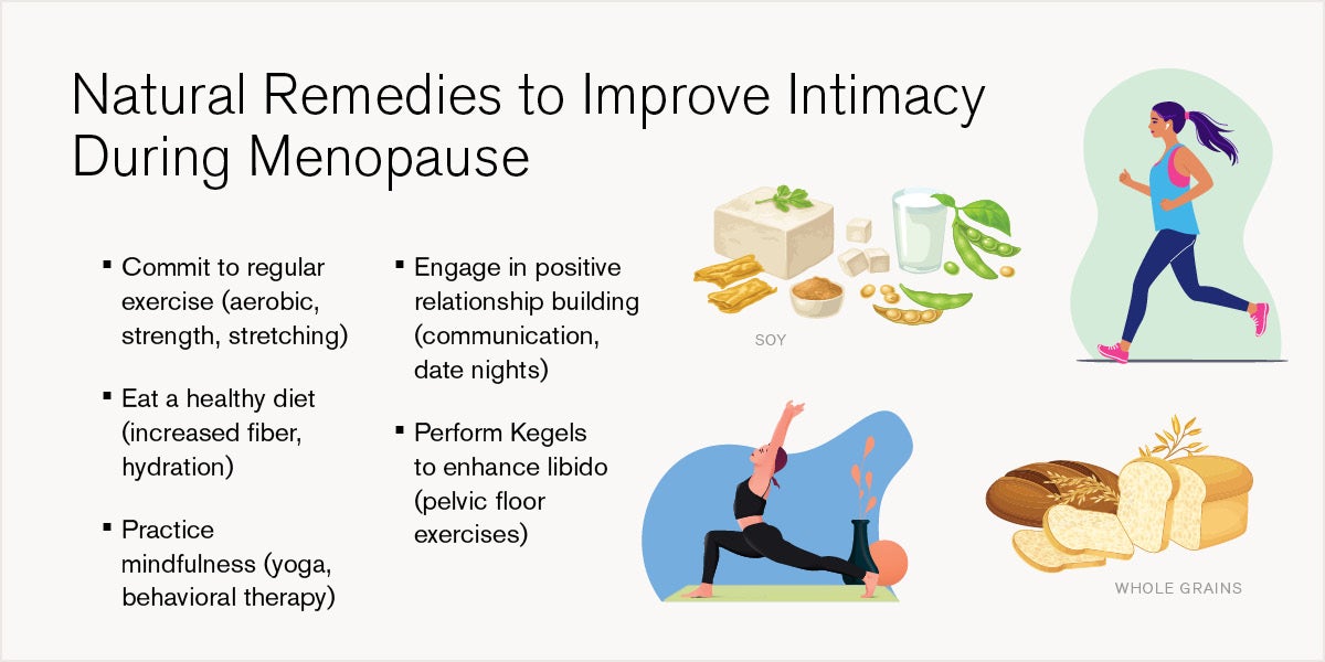 Regular exercise, a balanced diet and stress management can positively impact sexual health. Physical activity boosts circulation and mood, while a diet rich in phytoestrogens (found in soy, flaxseed, and whole grains) may help balance hormone levels naturally. Mindfulness practices, yoga and therapy can also support emotional well-being and intimacy. Also, pelvic floor physical therapy can strengthen muscles that support sexual function. It may improve blood flow, reduce pain and enhance sensation. Therapists trained in this specialty can guide you through exercises and techniques tailored to your body.