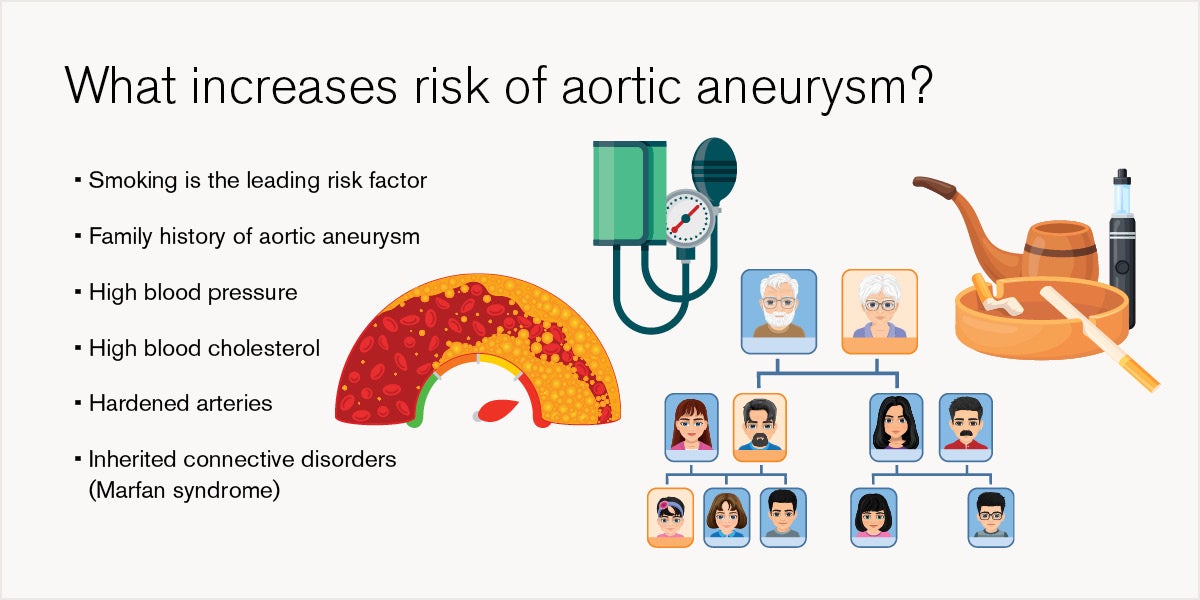 Diseases and poor lifestyle choices that damage your heart and/or blood vessels increase the risk of aortic aneurysms. Smoking is the most common and significant behavior related to these aneurysms. Most cases have developed in people who are current, or former, smokers.