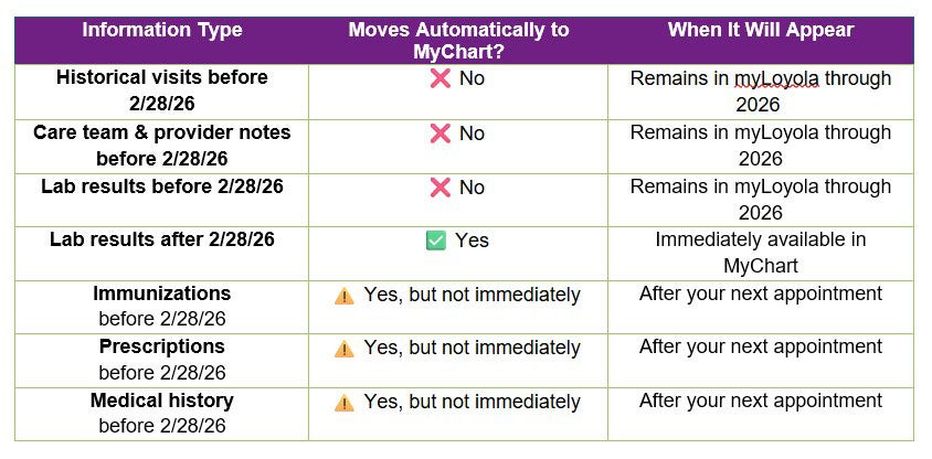 Loyola Medicine is comprised of the following entities, all of which will be transitioning to the new MyChart: